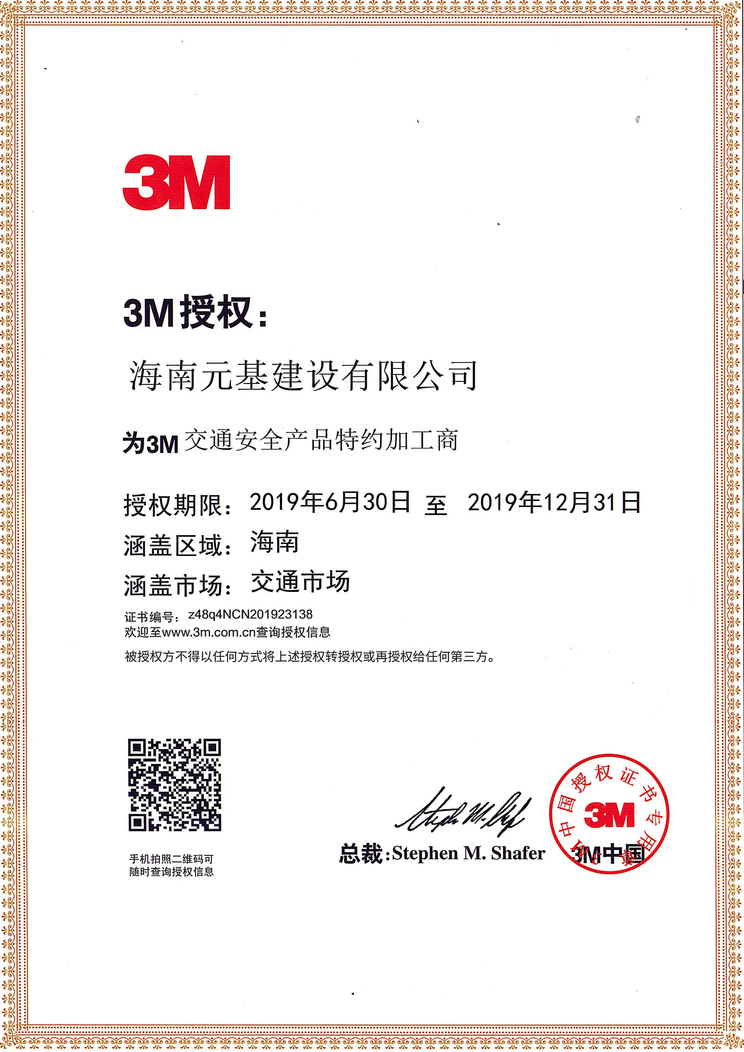 3M公司授權(quán)于公司為交通安全產(chǎn)品特約加工商