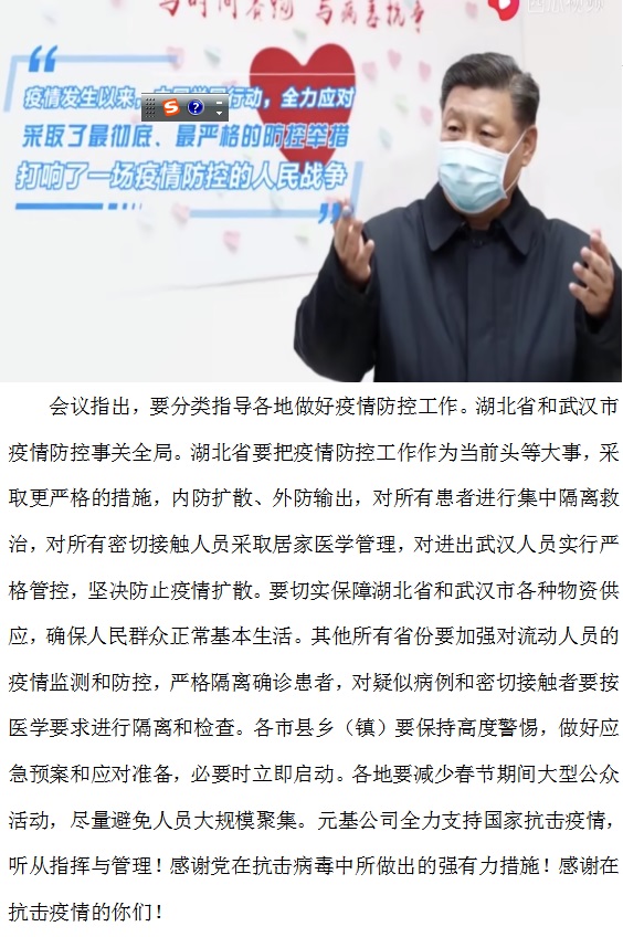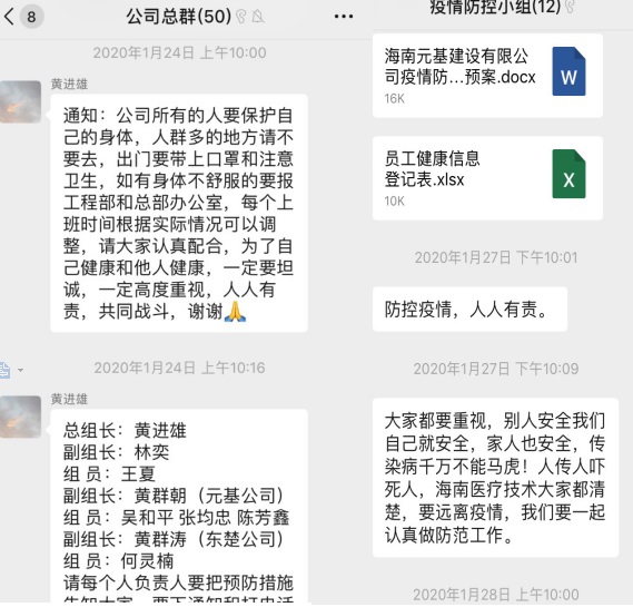 自2020年1月24日以來元基公司利用微信群多次進行預防新型