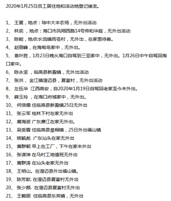 在疫情期間,每日組織員工使用微信接龍工具在公司群進行員