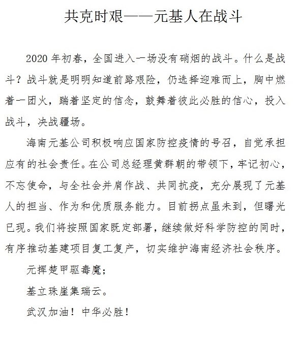 疫工作,結(jié)合目前海南疫情實況,為確保公司員工的健康和安全,