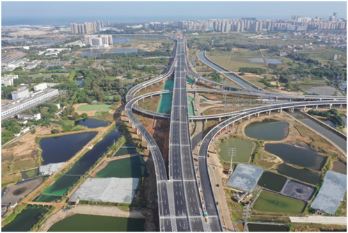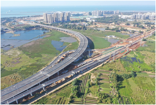 項(xiàng)目通車后,將連接新海港和G98環(huán)島高速,并與海秀快速路形成環(huán)線。項(xiàng)目建成后將進(jìn)一步完善國家高速公路網(wǎng)和海南省公路網(wǎng)結(jié)構(gòu),滿足未來新海港疏港交通的需求,有效促進(jìn)新海港、南港和馬村港的“三港融合”,對改善區(qū)域交通條件、提升當(dāng)?shù)貙ν饨煌ㄐ蜗?、促進(jìn)沿線經(jīng)濟(jì)社會(huì)發(fā)展具有重要意義。